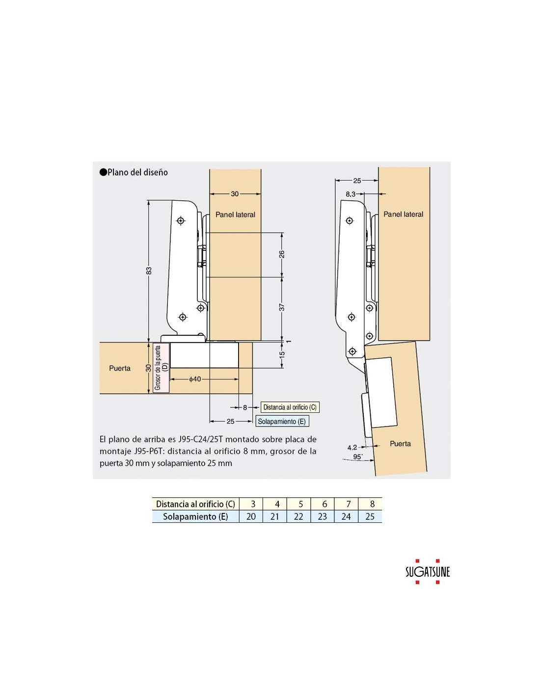 Bisagra Cazoleta Sugatsune J95 para Puertas Pesadas - Carga hasta 40kg