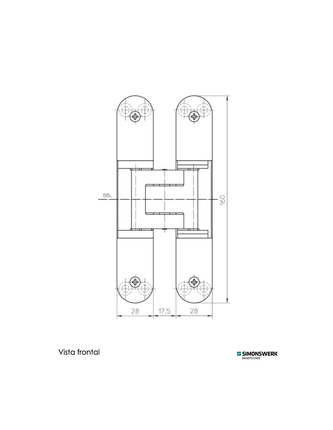 - Regulación en 3D (lateralmente +/- 3,0 mm, en altura, +/- 3,0 mm, en profundidad +/- 1,0 mm).