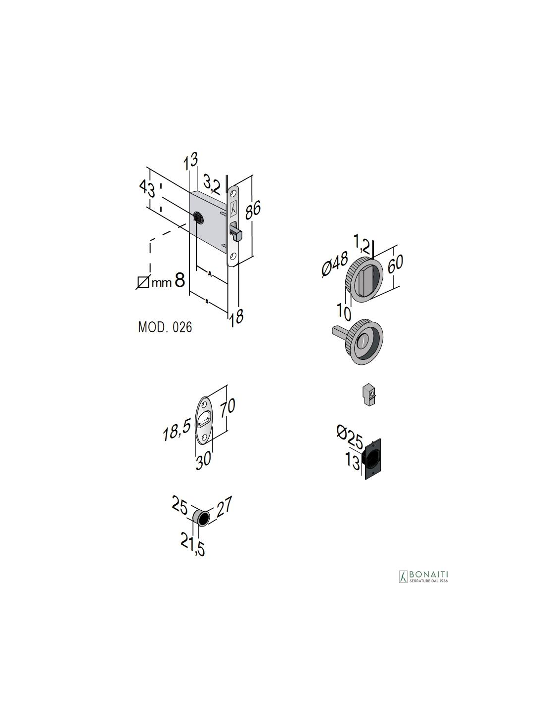 El Kit Cerradura Corredera Bonaiti G500 mod. 026 combina diseño sofisticado con funcionalidad superior para puertas correderas. Sistema de bloqueo/desbloqueo con tiradores redondos y picaporte G500 de alta durabilidad. Ideal para espacios residenciales y comerciales que buscan privacidad, seguridad y estética refinada.