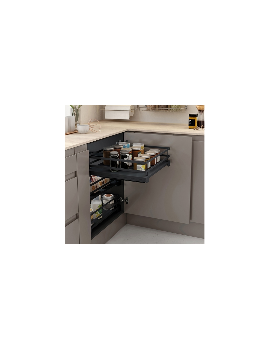 Entre sus productos podemos destacar las columnas extraíbles, botelleros, soluciones prácticas para los módulos de rincón como por ejemplo las bandejas Dolphin, cubos para el reciclaje, pantaloneros, zapateros o el sistema modular para crear estanterías o vestidores entre otros.