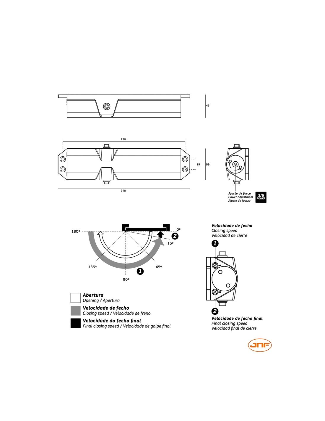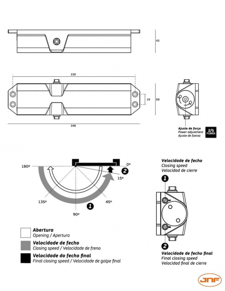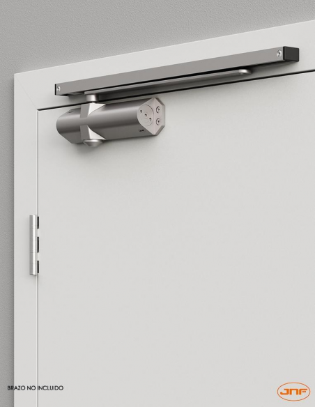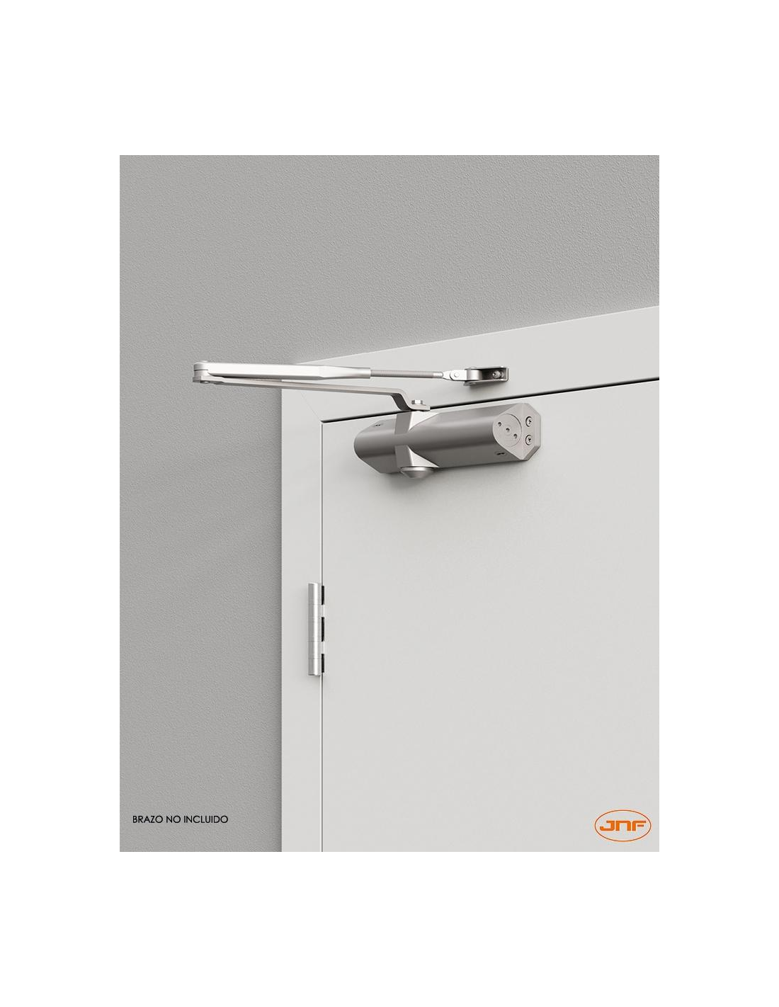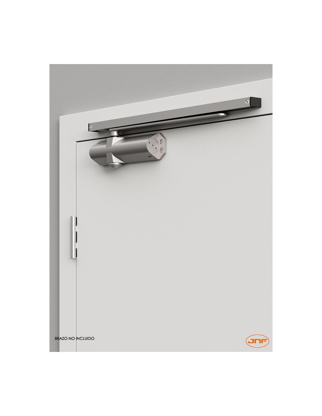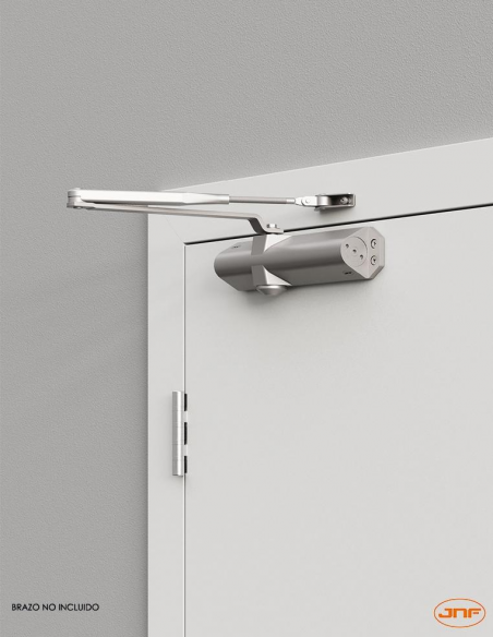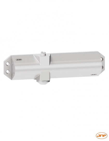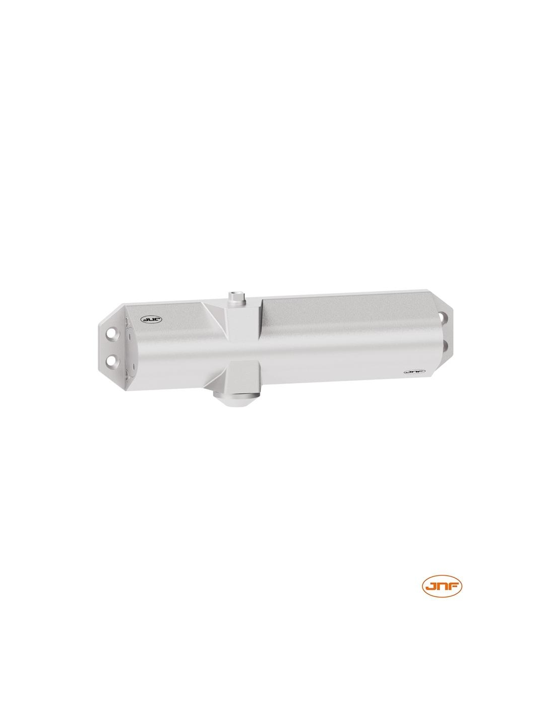 El cierrapuertas de sobreponer JNF ML.21.610 es una solución robusta y fiable para controlar el cierre de puertas de forma segura. Diseñado para soportar puertas de hasta 120 kg y 1250 mm de ancho, este cierrapuertas hidráulico ofrece un rendimiento superior con su mecanismo de piñón y cremallera. Su fuerza ajustable (EN 2-5) permite una configuración precisa para adaptarse a diferentes pesos y tamaños de puerta.