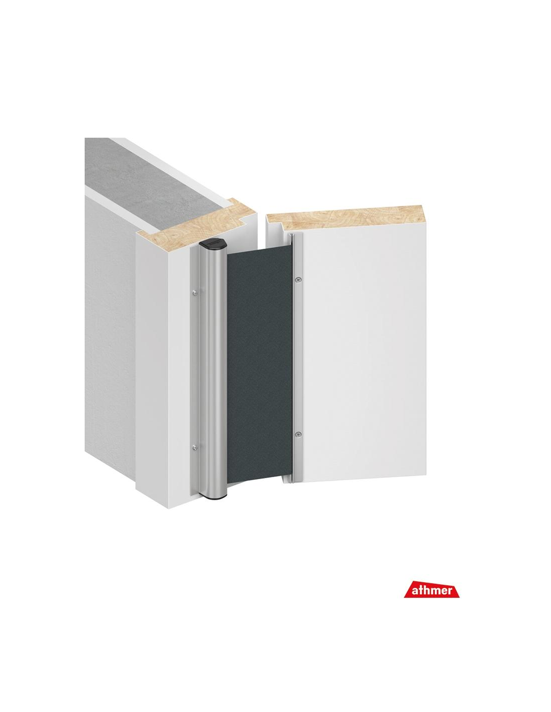 Athmer NR-25 es el sistema de protección de dedos para puertas más vendido y fiable. Diseñado para prevenir el riesgo de atrapamiento de dedos en el lado opuesto a la bisagra, este producto combina un diseño compacto con una seguridad certificada, ideal para guarderías, escuelas, hospitales y cualquier entorno que requiera un alto estándar de protección.