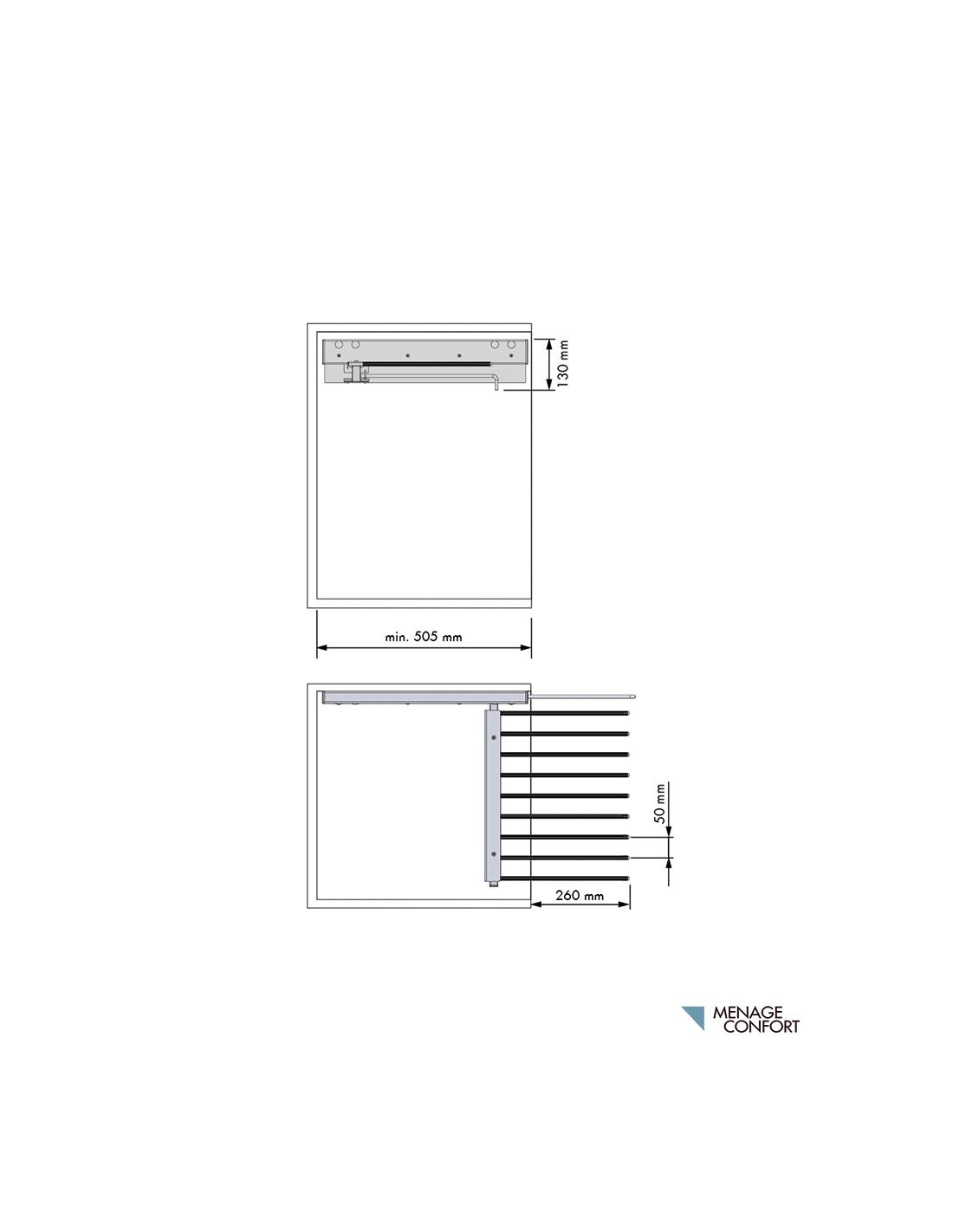 Diseñado para la máxima funcionalidad, este organizador de pantalones destaca por ser extraíble, permitiendo un acceso total y cómodo a cada una de las prendas sin necesidad de rebuscar. Su característica reversible lo hace increíblemente versátil, ya que se puede instalar en el lado izquierdo o derecho del módulo, adaptándose a cualquier configuración de mueble.