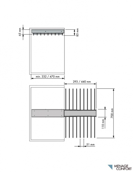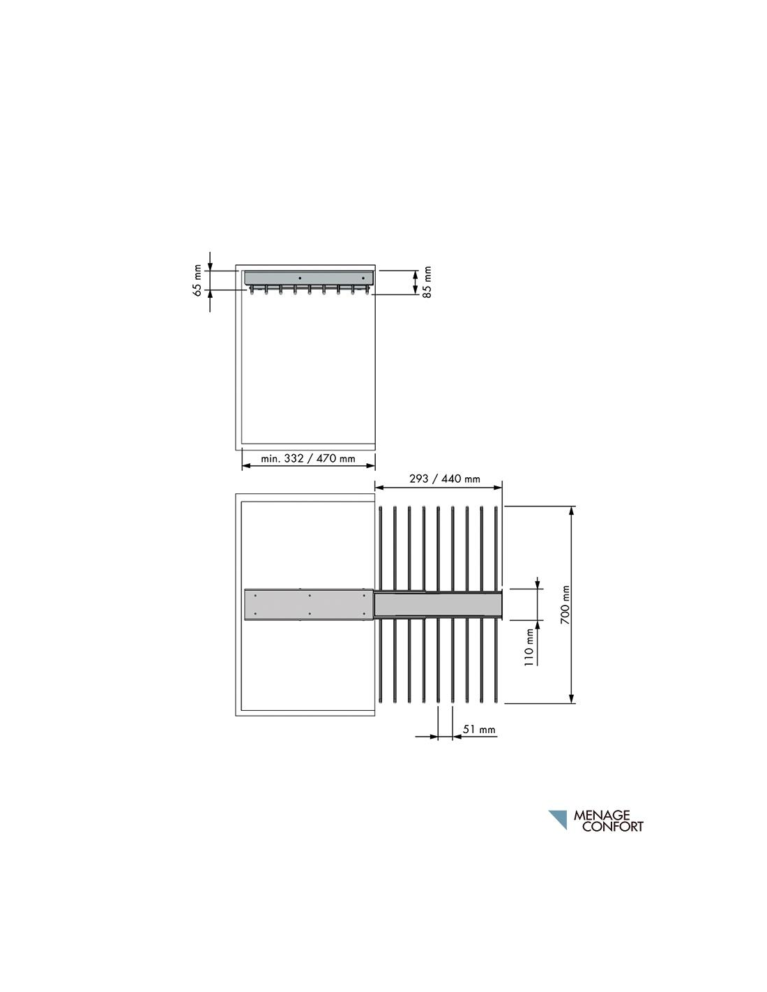 Este pantalonero está disponible en dos versiones de fondo para adaptarse a tus necesidades: la versión de 325 mm de fondo te permite almacenar hasta 14 pantalones, mientras que la de 460 mm de fondo tiene capacidad para 18 pantalones. Ambos modelos cuentan con soportes equipados con funda antideslizante, asegurando que cada prenda se mantenga en su sitio sin deslizarse ni arrugarse.