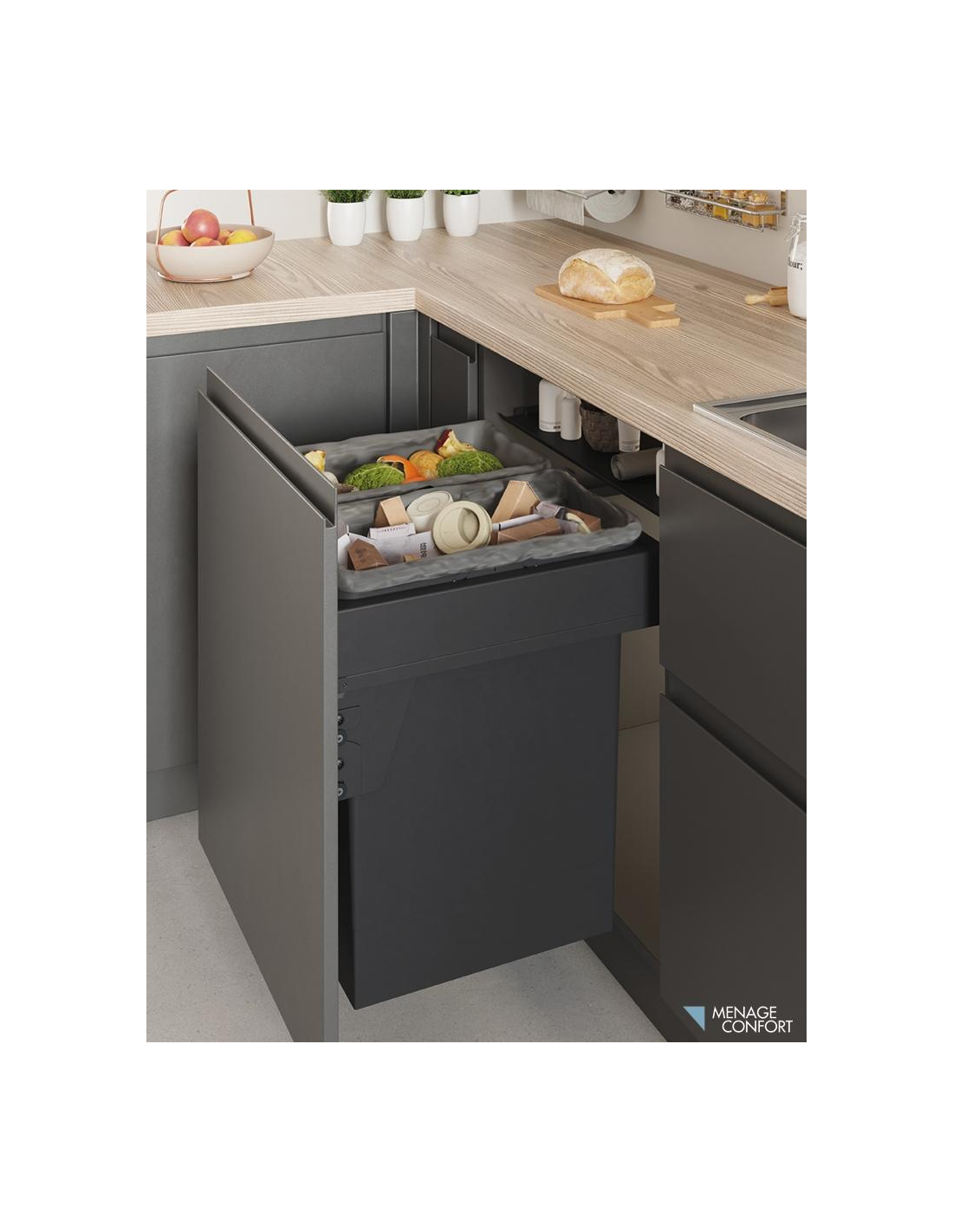 El Cubo de Basura Ecológico Frontal de Menage Confort representa la solución más avanzada en gestión de residuos para cocinas modernas y funcionales. Este sistema combina tecnología, diseño y durabilidad en un producto de alta gama.