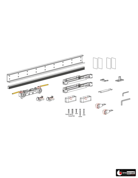 Kit Magic2 de Terno Scorrevoli: el sistema de puerta corredera oculta original. Este revolucionario sistema italiano cuenta con mecanismos completamente invisibles: sin guías visibles, sin frenos amortiguados a la vista y sin carros deslizantes expuestos. Compatible con puertas de 35-42 mm de grosor. Magic2 se integra perfectamente en paredes de ladrillo macizo, hueco, hormigón y pladur. Con más de 10 años en el mercado y patentes exclusivas, Magic2 ofrece un deslizamiento excepcionalmente suave y silencioso gracias a su innovadora tecnología Fluid con amortiguadores de doble muelle. Soporta hasta 80 kg. Las ruedas inferiores patentadas no dejan marcas en el suelo. Sistema certificado con hasta 100.000 ciclos de apertura.
