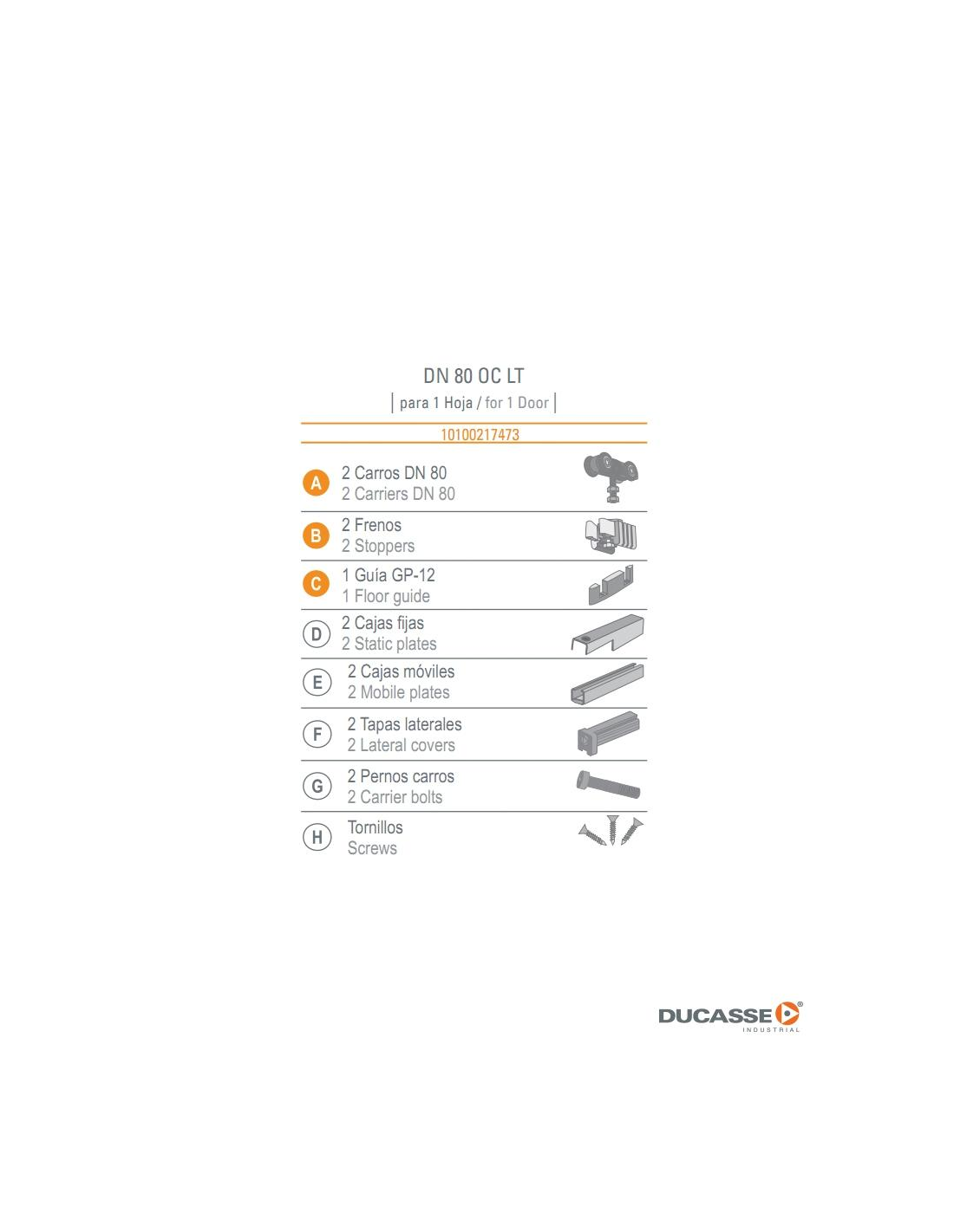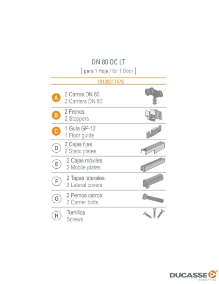 Jgo. accesorios DN 80 OC LT retráctil Ducasse para puerta corredera
